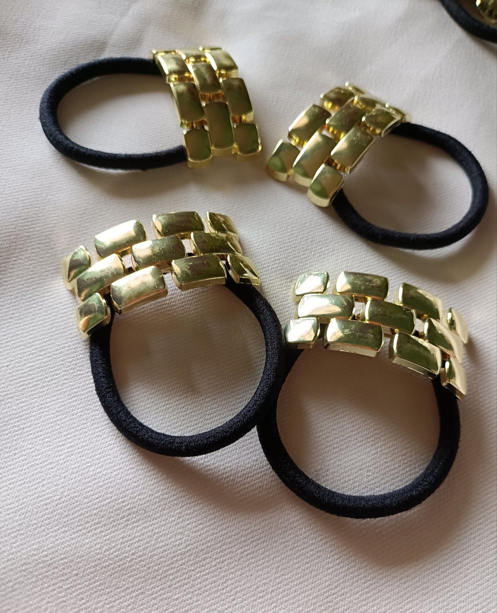 Turn every ponytail into a power statement with our Kemet Block Hair Cuff – where elegance meets edge. Featuring a bold, interlinked gold-tone design, this piece channels the essence of high-fashion accessories while serving the functionality of a classic elastic.